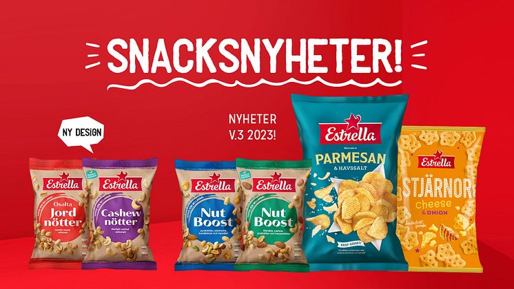 Snacksnyheter v.3 2023 + Ny design nötter pratbubbla ovanför