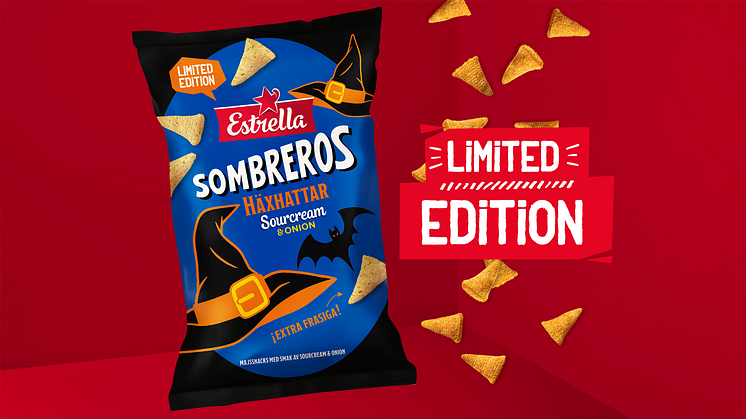 Estrellas spröda Sombreros i sin Halloweenkostym gör nu en comeback. Denna gången kommer Estrellas Häxhattar utklädda i favoritsmaken gräddfil och lök. Det perfekt snackset till skräckfilmen eller maskeradfesten. Denna kusliga limited edition lanseras 2 oktober och finns under en begränsad period.