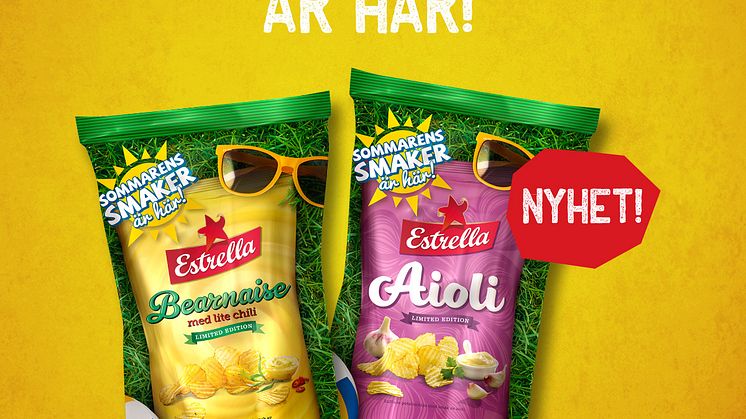 Lagom till semestern släpper Estrella två nya sommarsmaker på chips. Härliga Aiolichips och mustiga Bearnaisechips!