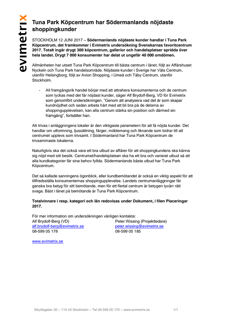 Tuna Park Köpcentrum har Södermanlands nöjdaste shoppingkunder