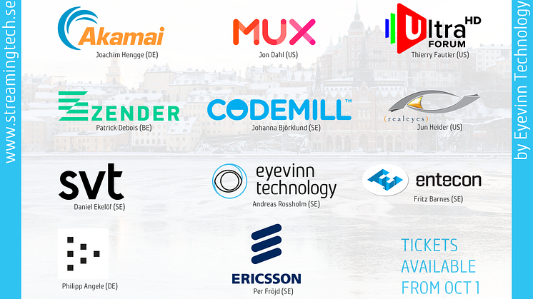 Det är nu för tredje året i rad som streaming-specialisterna Eyevinn Technology bjuder in till teknikkonferensen Streaming Tech Sweden. En teknikkonferens helt dedikerad till tekniken för video och streaming där teknikchefer, arkitekter och utvecklare i branschen samlas och blir inspirerade och utbildade av framträdande talare inom området. I år behandlas ämnen kring bland annat optimerad videokodning, AI och maskininlärning, Blockchain och low-latency och vi hittar talare från bland annat Netflix, Youtube, Ericsson, Akamai och SVT.