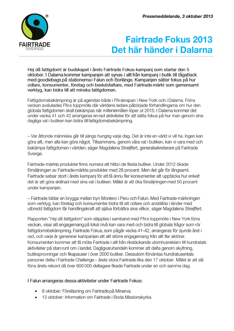 Fairtrade Fokus 2013 - Det här händer i Dalarna