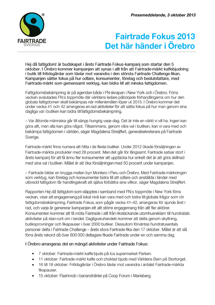 Fairtrade Fokus 2013 - Det här händer i Örebro