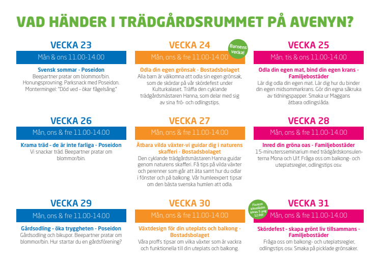 Här kan man läsa vad som händer i bostadsbolagens trädgårdsrum på Avenyn. Nytt tema varje vecka.