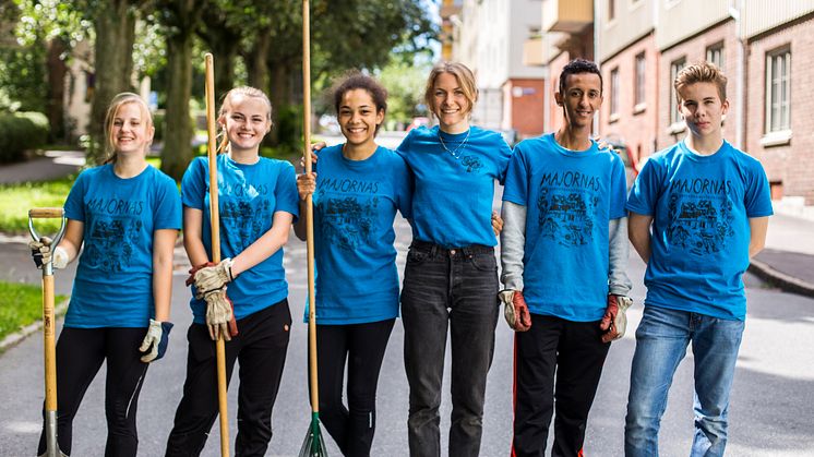 Det är bland gråsuggor och kirskål man hittar Majornas tonåringar nu för tiden. Årets sommarpraktik har börjat och ungdomarna ser till att det både fixas och donas tills krattorna glöder.