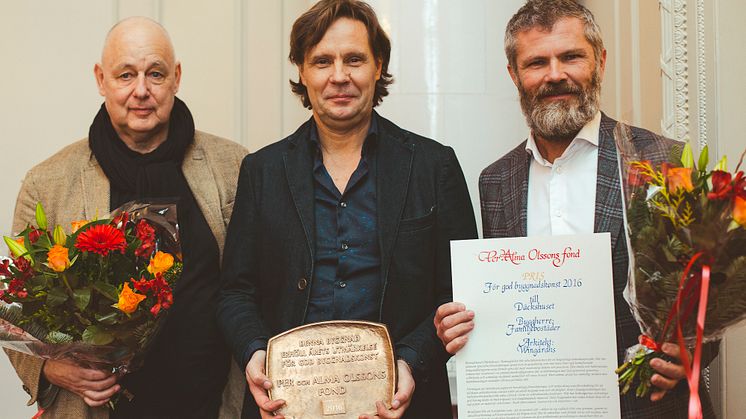 Vårt hus i Sannegårdshamnen har fått det fina priset som årets bästa byggnad av Per och Alma Olssons fond. I fint sällskap med bland andra Kville Saluhall och Amhults Kyrka som har fått priset tidigare år.