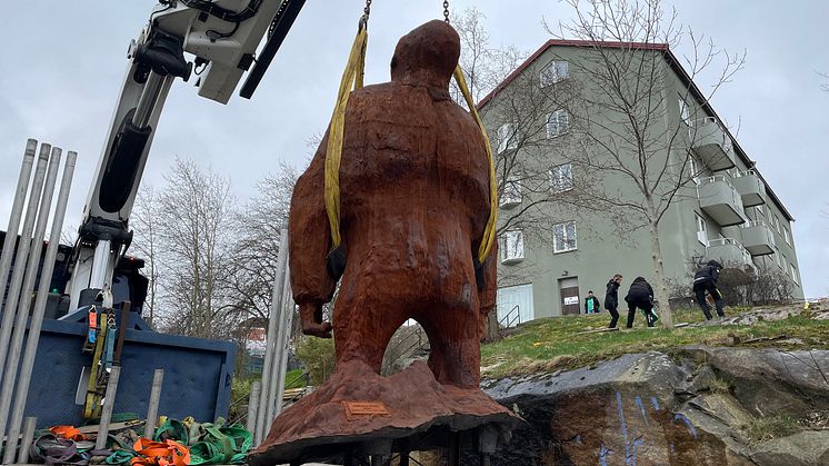 På onsdag den 17 april invigs ett nytt konstverk på toppen av Gråberget i Majorna. Här har en 2,5 ton tung gorilla i gjutjärn hissats på plats.