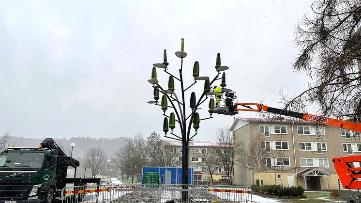 Nu står Göteborgs första sol- och vindträd i Eriksbo