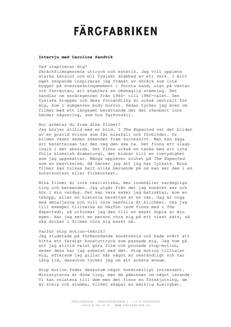 Kort intervju med Carolina Sandvik om hennes filmskapande.