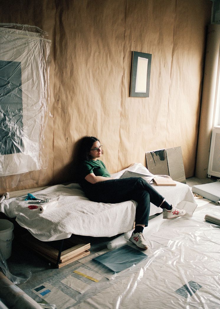 Porträtt av Laleh Kazemi Veisari i ateljén, fotograferat av Märta Thisner 2021