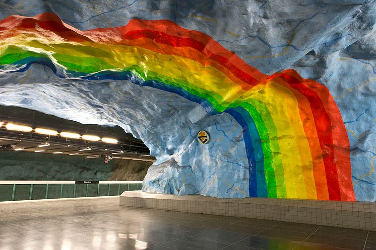 Stadion, tunnelbanestation skapad av Åke Pallarp och Enno Hallek. Foto av Hans Ekestang