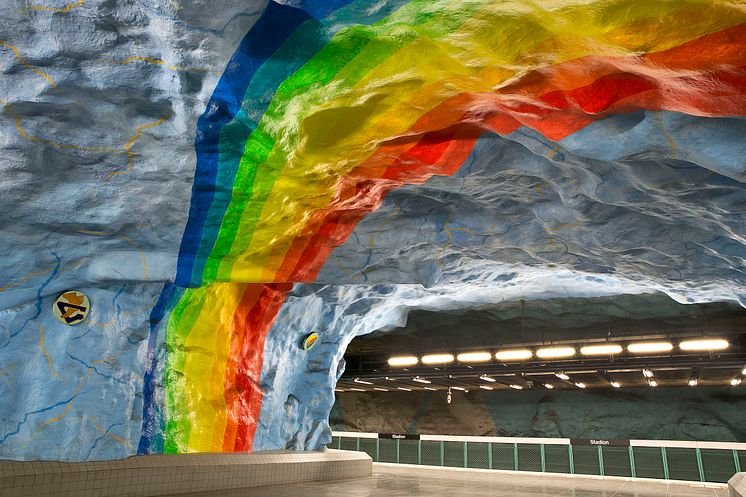 Stadion, tunnelbanestation skapad av Åke Pallarp och Enno Hallek. Foto av Hans Ekestang