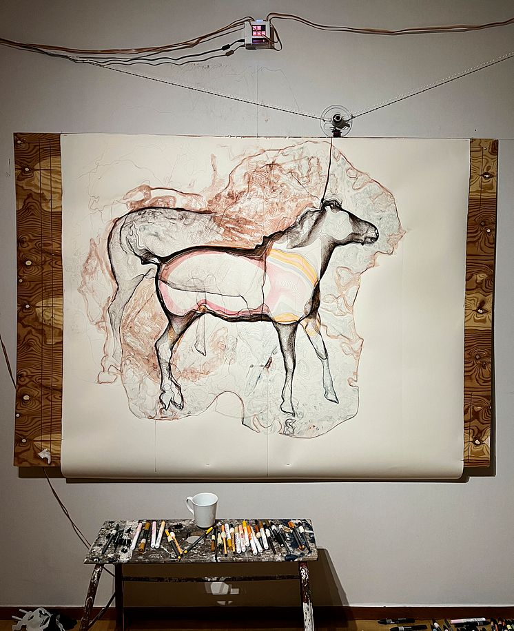 Processbild från Tove Kjellmarks projekt Hästen, roboten och det omätbara