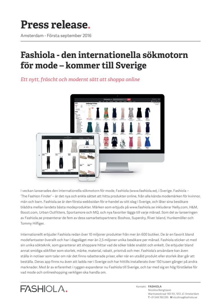 I veckan lanserades den internationella sökmotorn för mode, Fashiola (www.fashiola.se), i Sverige. Fashiola –