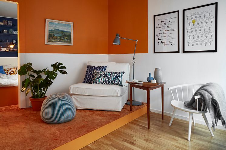 Det aktiva hemmet är anpassat efter ett par som vill ha flexibilitet för många olika aktiviteter, bland annat när de arbetar hemma. Olika rumsligheter passar för olika aktiviteter och definieras tydligt genom olika färgfält, golvmaterial och nivåer. Ytor frigörs genom att flytta in sängen i det minsta rummet. Den dekorativa skärmväggen kan användas för att skapa avskildhet mellan de olika ytorna.