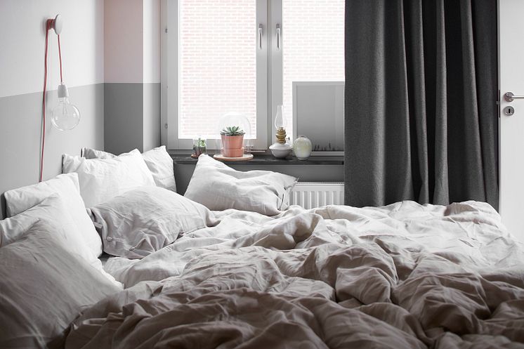 Här bor en familj med två barn och ytor för lek och aktivitet är centralt. Korkväggen i hallen fungerar som ett kommunikationsverktyg. Matplatsen är skapad som en plats där familjen kan umgås. Problematiken med lite plats för återvinning har lösts genom en platsbyggd möbel på bostadens stora balkong! Och vem vill inte ha en säng där hela familjen får gott om plats?