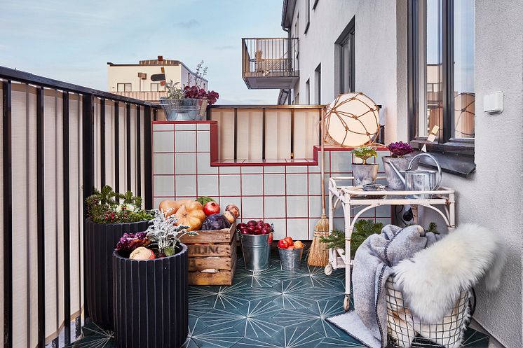 Här bor en familj med två barn och ytor för lek och aktivitet är centralt. Korkväggen i hallen fungerar som ett kommunikationsverktyg. Matplatsen är skapad som en plats där familjen kan umgås. Problematiken med lite plats för återvinning har lösts genom en platsbyggd möbel på bostadens stora balkong! Och vem vill inte ha en säng där hela familjen får gott om plats?