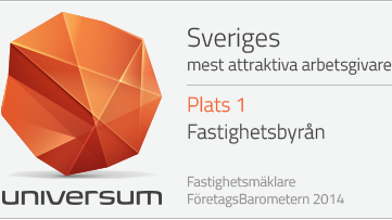 Fastighetsbyrån är Sveriges mest attraktiva arbetsgivare för mäklarstudenter. Det stod klart när priset delades ut på Universum Awards 2014. Priset bygger på resultatet av undersökningen FöretagsBarometern 2014.