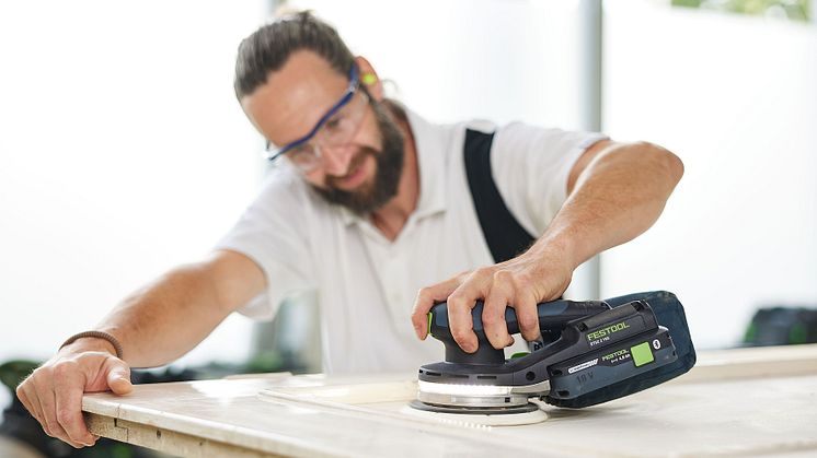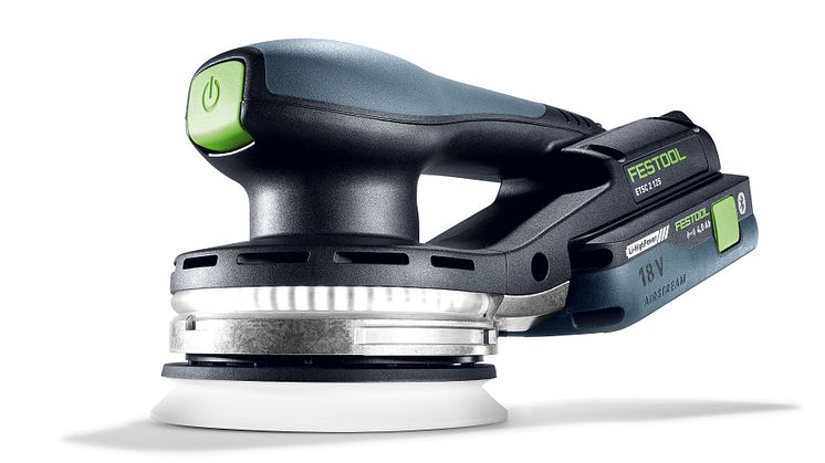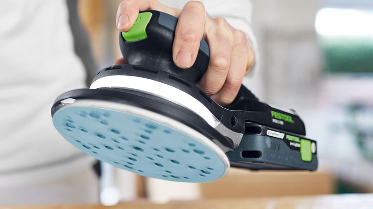 Med den batteridrivna excenterslipen får man maximal rörelsefrihet och slipper den besvärliga sladden. Det kraftfulla 4,0 Ah-batteriet ger högt arbetstempo och passar till Festools övriga 18V-maskiner. Den borstlösa EC-TEC-motorn är robust, kraftfull och nästan underhållsfri. Drivningskonceptet EC-TEC, som är framtaget av Festool, gör att verktygen utvecklar mer kraft samtidigt som energiförbrukningen minskar. EC-TEC-motorn arbetar slitagefritt utan kolborstar. ”EC-TEC kombinerar högre effekt med intelligens och livslängd”, förklarar Thomas Kunstfeld, EC-TEC-expert på Festools testavdelning. ”Den speciella effektelektroniken ger bara så mycket energi som behövs för varje arbetssituation. Det sparar energi och ger betydligt högre kapacitet per batteriladdning.”