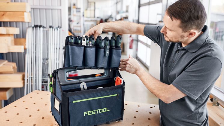 Denna ytterst robusta verktygsväska är tillverkad i högkvalitativ textil och klarar upp till 20 kg. Handverktygen kan placeras individuellt och dessutom ger facken in- och utvändigt många möjligheter. Den är bekväm att bära tack ett stabilt handtag med Softgrip och en vadderad axelrem. Den är kompatibel med hela Festools Systainer-system och enkel att koppla och transportera.