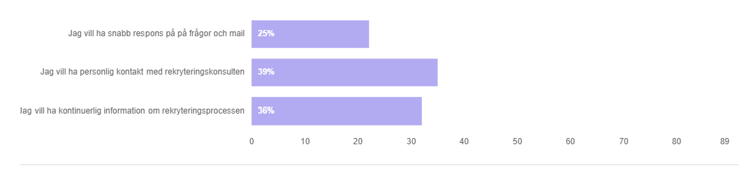 Vi försöker kontinuerligt utveckla vår rekryteringsprocess för att den ska bli så tillmötesgående som möjligt. Vilket påstående är viktigast för dig? Du kan endast välja ett påstående.