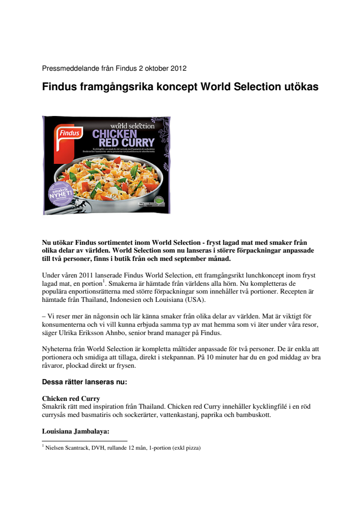 Nu utökar Findus sortimentet inom World Selection - fryst lagad mat med smaker från olika delar av världen. World Selection som nu lanseras i större förpackningar anpassade till två personer, finns i butik från och med september månad.