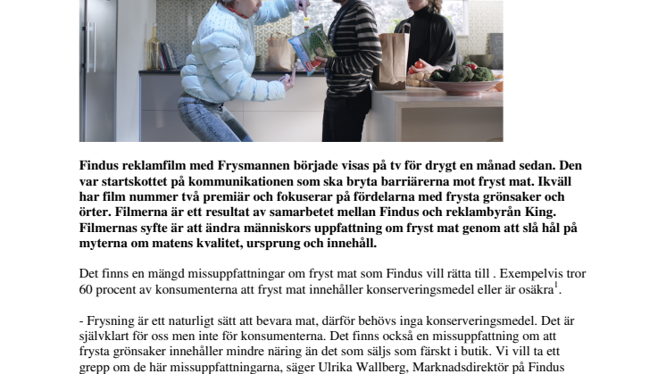 • Findus släpper ny reklamfilm med Frysmannen: ”I frysen bevaras grönsakernas näring och smak - här står tiden still”