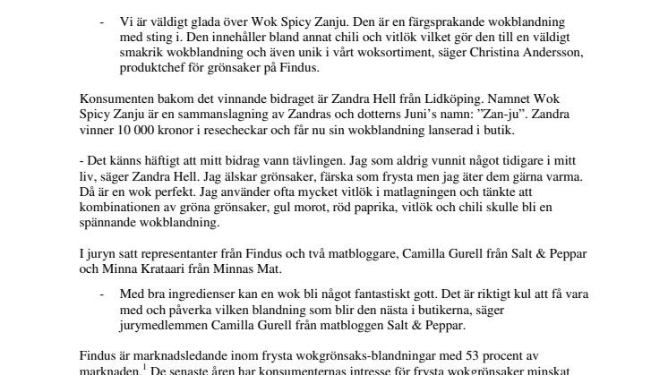 • Findus lanserar Wok Spicy Zanju - skapad av en av våra konsumenter