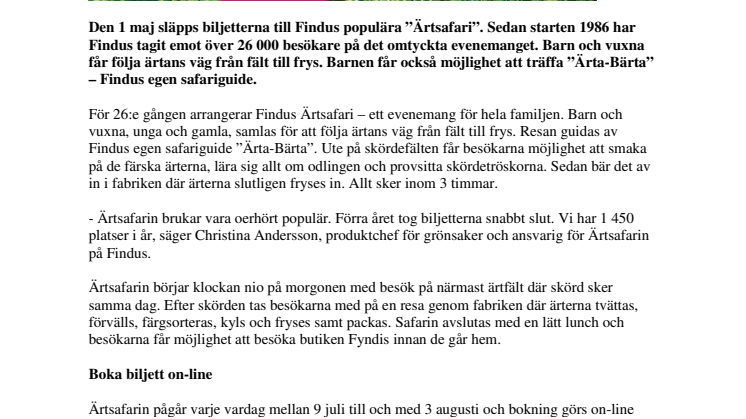 • 1 maj släpps biljetterna till sommarens Ärtsafari