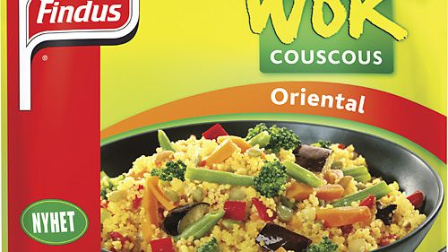 Wok Couscous Oriental heter den andra nylanseringen. En wok med couscous, morötter, linser, äggplanta, gröna bönor, paprika och broccoli smaksatt med vitlök, ingefära och kanel. Cirkapris i butik drygt 35 kronor för 650 gram.