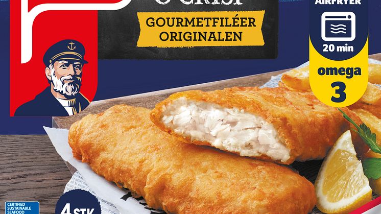 Nu tilldelas Findus krispiga Gourmetfiléer utmärkelsen "Bästa MSC-produkt 2025" av Marine Stewardship Council (MSC). Under våren har MSC, miljömärket för hållbart fiske, genomfört en omröstning där svenska konsumenter röstat fram bästa MSC-produkt och Findus Fish & Crisp Gourmetfilé har nu blivit vald av svenska konsumenter till MSC favorit.