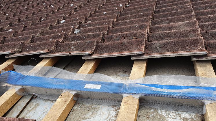 På ytterväggen under takfot kommer mineritskivor att monteras som tätar eventuella glipor under takfot och motverkar spridning av brand i träkonstruktionen.