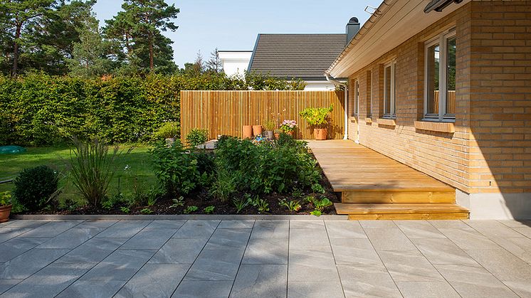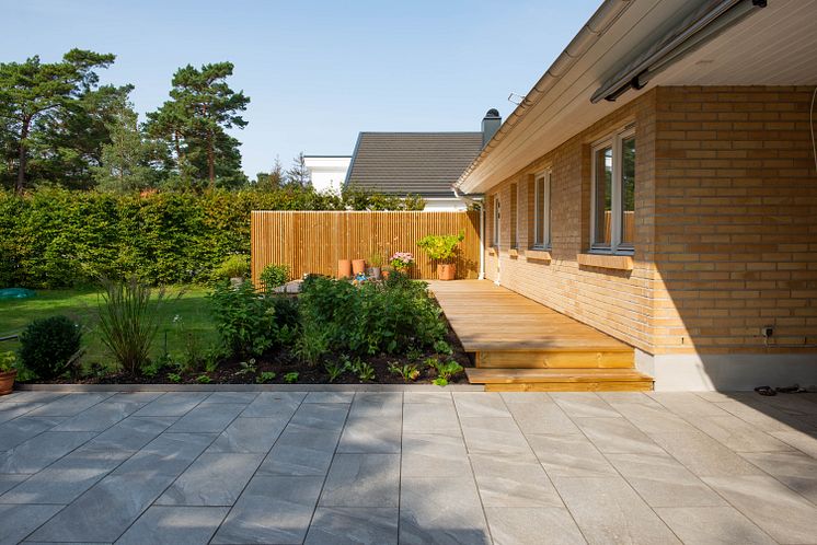 Ytterligare en fördel med plattor av granitkeramik är att de kan produceras i mycket stora format – 80x40 cm, 60x60 cm och ända upp till 240x120 cm, vilket är Flisbys största platta.