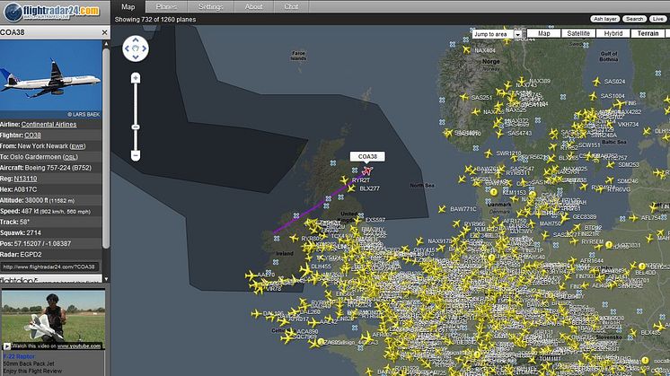 Under morgon har flygplatser i norra Irland och norra Storbritannien fått stänga p.g.a. askmolnet. Många resenärer är oroliga är för sina eller sina vänners flyningar och för dessa är www.flightradar24.com ett mycket bra hjälpmedel som visar hur flygtrafiken över Europa ser ut i realtid. Man kan se var det flygs, vilka flygplatser som har flygtrafik, vilka rutter flygplanen flyger på och sist med inte minst kan man se var enskilda flygningar befinner sig.