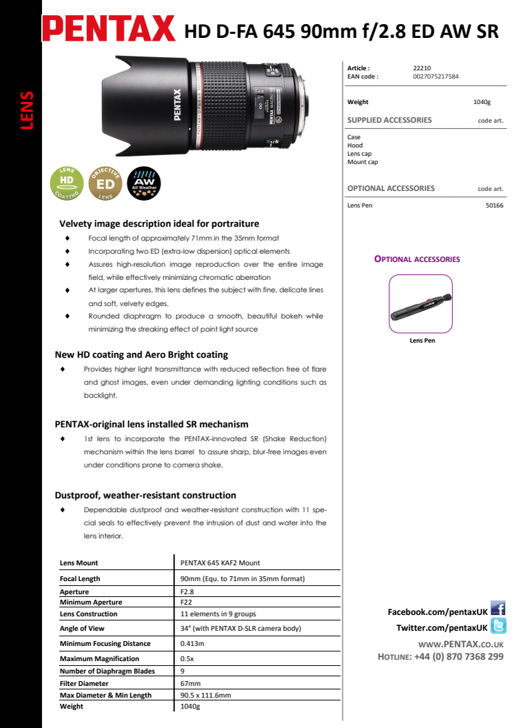 Datablad Pentax 90mm Makro till 645D