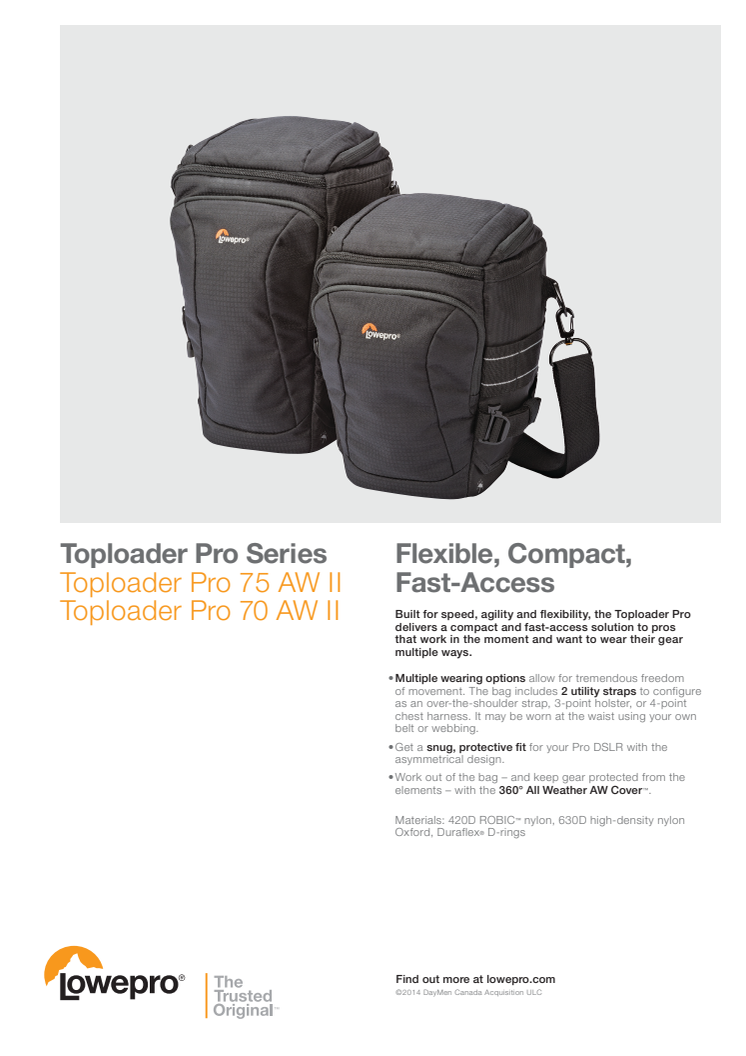 Lowepro Toploader Pro II, datablad