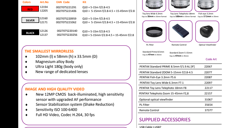 Pentax spegellösa systemkamera Q, som är världens minsta* kamera med utbytbar optik, får nu en uppgraderad efterföljare. Den nya kameran har fått en ny förbättrad CMOS-sensor och en mycket snabbare autofokos. Även kamerans grepp har förbättrats jämfört med föregångaren.