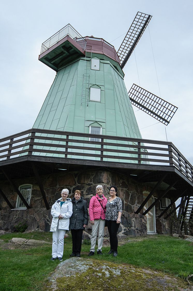 Birgitta Olsson (vit jacka),Inez Johansson (svart jacka) och Vivi-Ann Wallin (rosa) tillsammans med Shina Karim, från Förbo vid kontraktskrivningen för 70+ boendet på Kvarnkullen