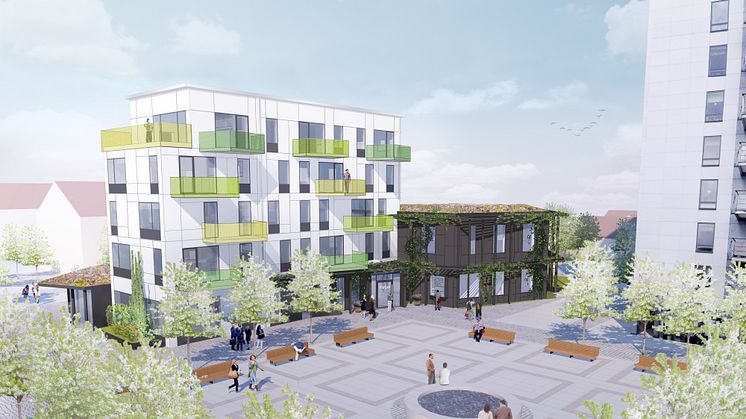 De 18 lägenheterna fördelas på 1- 3 rum och kök. Förbo kommer också att ha sitt huvudkontor i huset.