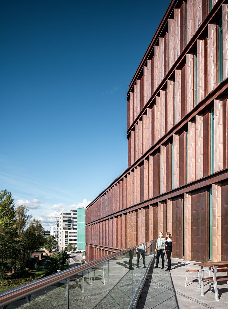 Två terrasser i västläge mot parken ligger i anslutning till personalmatsalarna.