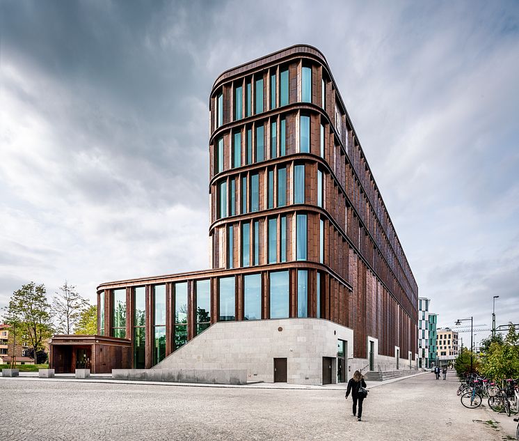 Huvudentrén vänder sig mot Tingsrättsplatsen i söder.