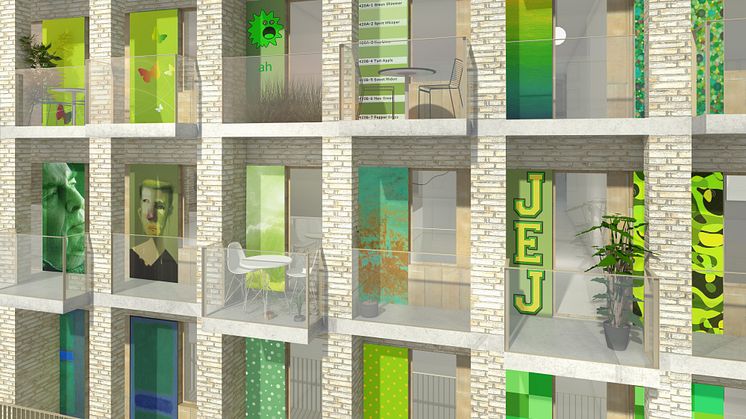 – I uppdraget från byggherren Abacus formulerades viljan att involvera de boende och inspirera dem att betrakta lägenhetens utsida som en konstnärs duk. I mötet med Stockholms Stads krav på en stram fasadarkitektur fann vi en typologi och en struktur som gör detta möjligt. Fasaden har en strikt yttre del, ett ordnat rutnät i tegel. Innanför detta finns balkonger och fasadskiktet som de boende kan påverka - en lek med tydliga spelregler. Det här är en byggnad som har förutsättningar att bli en av Stockholms framtida attraktioner, både för boende och tillresta, säger Jens Larsson.