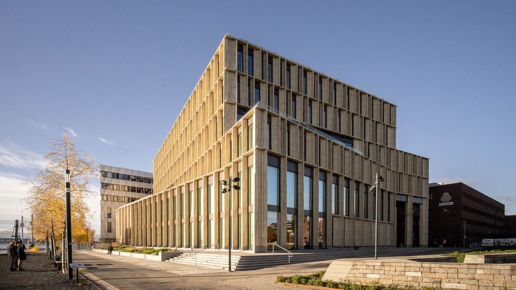 FOJAB, som har stor erfarenhet av att arbeta med rättsbyggnader, har gestaltat den nya byggnaden för hovrätten och kammarrätten vid Munksjöns strand. Den ska fungera minst lika länge som den gamla, en ambition som märks i materialvalet och den omsorgsfulla gestaltningen.