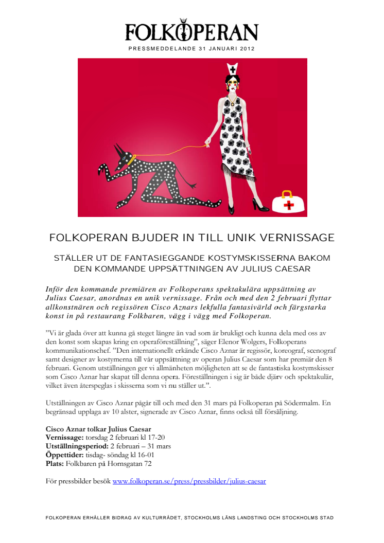 FOLKOPERAN BJUDER IN TILL UNIK VERNISSAGE