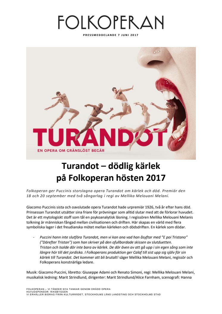 TURANDOT – DÖDLIG KÄRLEK PÅ FOLKOPERAN HÖSTEN 2017