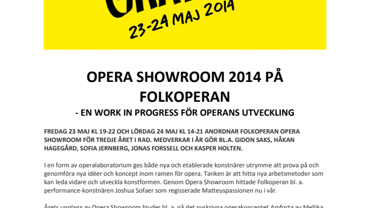 OPERA SHOWROOM 2014 PÅ FOLKOPERAN