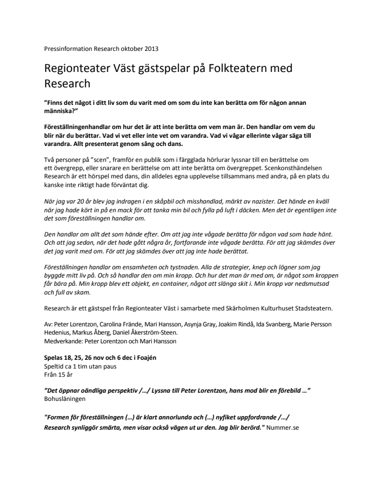 Pressinformation Research oktober 2013