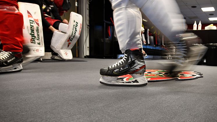 - Att gå med skridskor är som att gå med knivar på fötterna. Spelarna går omkring och vänder och vrider runt exempelvis skänken där vi förvarar tejp. Där kan det bli någon fläck, men då byter man den skivan, säger Thomas.