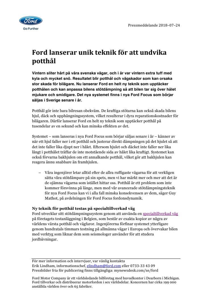 Vintern sliter hårt på våra svenska vägar, och i år var vintern extra tuff med kyla och mycket snö. Resultatet blir potthål och vägskador som kan orsaka stor skada för bilägare. Nu lanserar Ford en helt ny teknik som upptäcker potthålen och kan anpassa bilens stötdämpning så att bilen tar sig över hålet mjukare och smidigare.