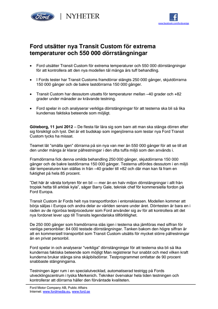 Ford utsätter nya Transit Custom för extrema temperaturer och 550 000 dörrstängningar